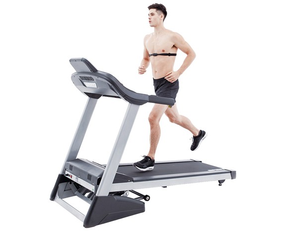 Представленная беговая дорожка оснащена современной консолью с жидкокристаллическим дисплеем, имеющим синюю подсветку. «Горячие» клавиши позволяют быстро переключать скорость и угол наклона бегового полотна. Эти параметры можно также менять с помощью клавиш переключения, встроенных в поручни беговой дорожки. Для измерения пульса используется беспроводной кардиодатчик.