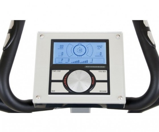 Тренировочный компьютер, которым оснащен этот тренажер, обладает невероятными возможностями. Консоль оборудована цветным ЖК-дисплеем, на котором отображаются все необходимые тренировочные параметры, позволяющие следить за ходом тренировки. Встроенный программный пакет включает 12 тренировочных программ, позволяющих решать различные фитнес задачи. Среди них и пользовательская программа, и кардиозависимые тренировки, и фитнес-тест, позволяющий оценивать состояние сердечнососудистой системы, и функция Recovery, обеспечивающая восстановление пульса после тренировки. Консоль тренажера совместима с кардиодатчиком Polar, что является очень важной опцией, которая позволяет получить высокую точность измерения пульса. Среди преимуществ тренажера можно назвать и возможность работы эллипсоида как от электропитания, так и от адаптера на аккумуляторах, то есть при необходимости тренажер может быть установлен без привязки к сетям электропитания.