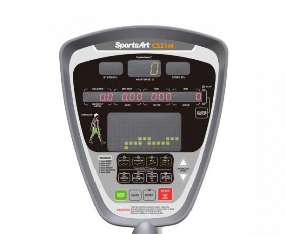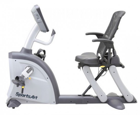 Велотренажер разрабатывает мышцы ног, воздействуя на каждую группу. Тренажер C521M горизонтального типа от компании Sports Art предназначен для физиотерапии и восстановления пациентов, столкнувшихся с заболеваниями ног. Для удобства использования модель оснащена регулируемым сиденьем, в котором есть специальный мешочек для компрессов. Педали велотренажера вращаются в дух направлениях и регулируются на 5 - 7 градусов от радиуса движения. Панель позволяет менять режим во время тренировки. Рама сделана таким образом, чтобы не препятствовать людям с ограниченными возможностями забираться на тренажер. Тренажер Sportsart C521M можно использовать вместе с кардиографом Polar.