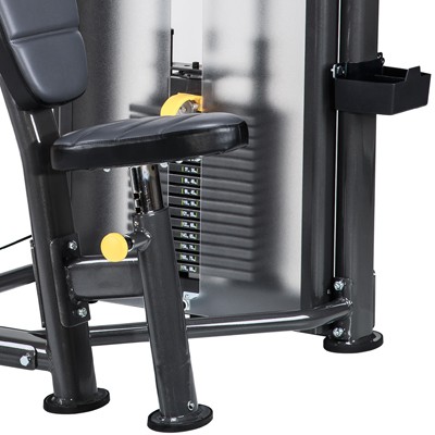 Конструкция тренажера обеспечивает целевую направленность нагрузки за счет полной изоляции дельтовидных мышц. Эффективность тренировок достигается благодаря естественной траектории рычагов. При этом вращающиеся рукоятки снижают нагрузку на запястья.