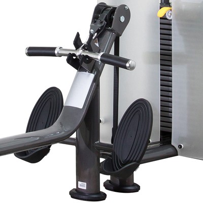 Тренажер имеет нижний блок, регулируемый по высоте и позволяющий точно направить момент прилагаемого усилия.