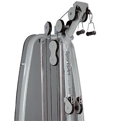 Мультистанция S93 компании SportsArt Fitness дает возможность тренировать все группы мышц нижней и верхней части тела. На ней можно выполнять 55 различных упражнений. Тренажер оснащен боксовой вращающейся панелью для аксессуаров, в которой имеется большой набор рукояток, грифов и аксессуаров. На ней также есть схемы, указывающие правильное выполнение разных упражнений.