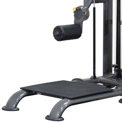 Регулируемый угол поворота силового рычага позволяет выполнять множество различных упражнений, а мягкий пуфик фиксирует положения по высоте.