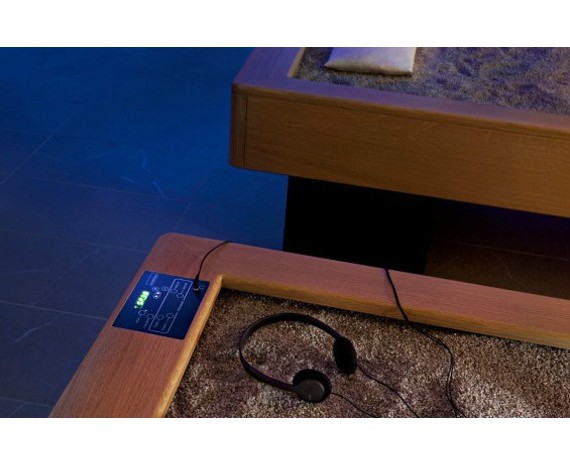 Немаловажным достоинством модели Dune является встроенная инновационная аудиосистема. Она дополняет ощущения от теплого песка позитивными эмоциями. Надев наушники, клиенты смогут наслаждаться своей любимой музыкой. На клавиатуре можно выбрать одну из четырех программ - Тонизация, Релакс, Восхищение или Очищение. Каждая программа основана на особых частотах, которые разработаны для определенного вида отдыха. Помимо этого имеется возможность без труда подключить собственный плеер. Превосходный шезлонг для релаксации Dune будет востребован в любой спа-центре.