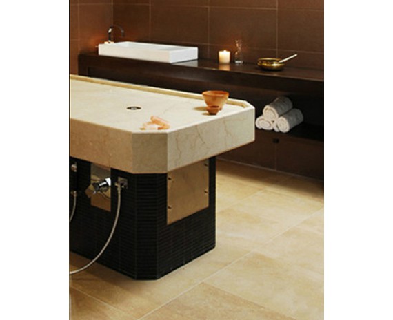 Представленный Hammam Table обладает непревзойденной функциональностью и долговечностью. Такая модель будет оптимальным оснащением для любого современного хаммама. Поверхность стола выполнена из уникального цельного куска мрамора. Тщательно продуманная форма конструкции существенно предоставляет безграничные возможности в процессе проведения различных СПА-процедур. На таком столе можно выполнять не только мыльный массаж, но и всевозможные аппликации, обертывания, пилинги и контрастные водные души.