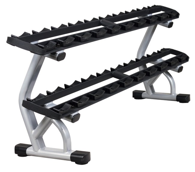 Универсальная двухъярусная стойка для 10 пар гантелей ML-0125 компании Stex представляет собой прочную устойчивую конструкцию, изготовленную из высококачественной нержавеющей стали. Для хранения гантелей имеются две полки. Креативный дизайн дополнительно подчеркивает солидность и надежность модели. Стальная рама обладает верхним лаковым покрытием, которое препятствует оседанию пыли и не боится появления царапин.