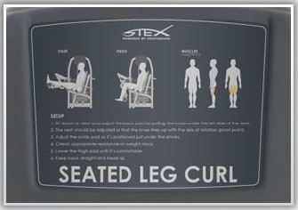 Тело пользователя надежно зафиксировано в процессе тренировки, благодаря специальным боковым рукояткам. При необходимости спортсмен может, вставая с сиденья, настроить желаемое положение валика для голени и спинки, а также выбрать подходящий диапазон движений. Модель оснащена понятными плакатами с наглядными картинками, на которых представлена читабельная информация, помогающая в полную силу задействовать соответствующие мышцы. Магнитный селектор обеспечивает легкий выбор необходимого веса. Широкие плиты на компактном весовом стеке способствуют созданию идеальной нагрузки.