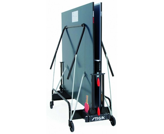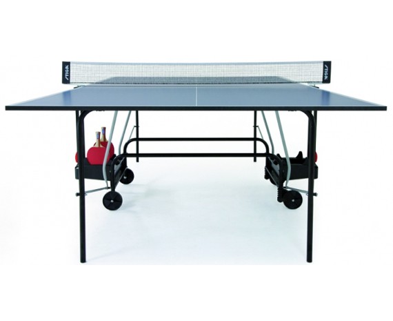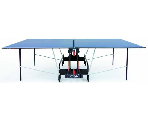 Превосходный теннисный стол создан для игры в теннис в защищенных от погодных условий помещениях. Улучшенная складная система позволяет быстро подготовить стол к игре, а уникальный дизайн упрощает перемещение стола. Высокий комфорт игры за столом обеспечивается благодаря наличию специальных ячеек, в которых можно располагать мячи и ракетки. Стол также можно использовать для одиночной игры. Плита выполнена из ДСП с низким показателем выделением формальдегида, что дает гарантию безопасности изделия.