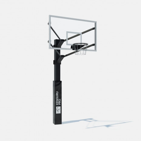 Баскетбольная стойка KENGURU PRO устанавливается на уличных баскетбольных или стритбольных площадках. Можно установить как в общественном пространстве, так и на частной территории. Стойка антивандальная: опорный столб сделан из металлического профиля 180х180 мм, толщина профиля 6 мм. Баскетбольный щит состоит из оргстекла, вставленного в алюминиевую раму. К щиту крепится баскетбольное кольцо стильного чёрного цвета, вместо сетки — цепь. Чтобы смягчить случайный удар игрока о баскетбольную стойку на опорный столб устанавливается защитный протектор. Чехол протектора из ПВХ, наполнение — вспененный полиэтилен.