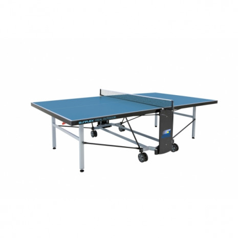 Игровая поверхность стола Ideal Indoor компании Sunflex выполнена из ДВП, снабженной многослойным композиционным покрытием, и усилена металлической отбортовкой, что придает конструкции устойчивость. Благодаря использованию стальных труб стол стабилен в рабочем и сложенном состоянии. Специальная блокирующая панель бережет от травм, а четыре колеса обеспечивают легкость перемещения. В комплект входит сетка с регулировкой высоты и силы натяжения, также имеются держатели под мячи и ракетки.