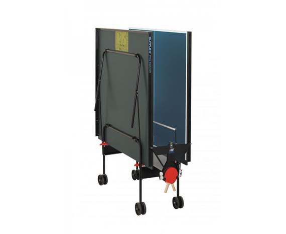 Стол Pro Indoor компании Sunflex выполнен из сочетания многослойной ДВП с композиционным покрытием и стальных труб, составляющих основу конструкции. Благодаря такому союзу стол обладает устойчивостью в рабочем и сложенном состоянии. Четыре сдвоенных колеса (2 маневровых) дарят простоту перемещения, блокирующая панель предохраняет от травмирования. В комплекте есть сетка, также имеются держатели для ракеток и мяча.
