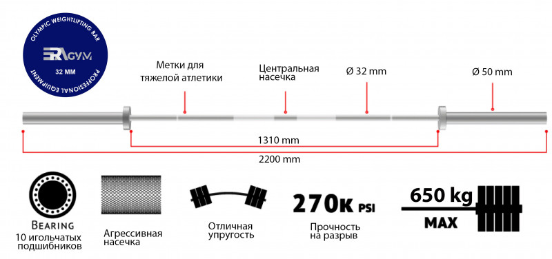 Олимпийский гриф штанги изогнутый OKB 1,61