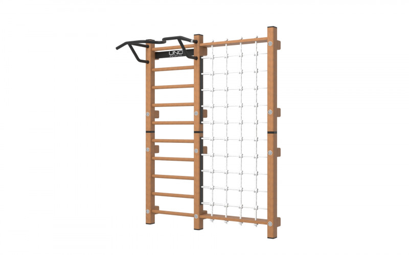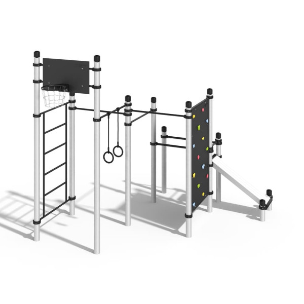 Резольют K-050/AL (Алюминий) - 4 турника, баскетбольный щит, брусья, кольца, наклонная скамья, скалодром, шведская стенка 1,55