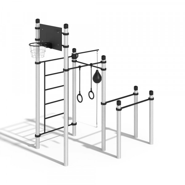 Грумант K-046/AL (Алюминий) - 2 турника, баскетбольный щит, брусья, кольца, скалодром, шведская стенка 1,49