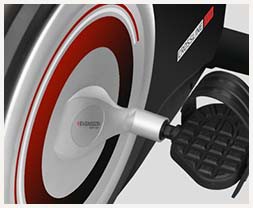 Электромагнитная нагрузка Spinmaster EMS™ Инновационная приводная система отвечает за плавное скольжение на всех уровнях нагрузки. Такой сложный комплекс включает различные биомеханические и механические решения. В электромагнитной системе высшего класса систем нагружения использованы 6 мощных магнитов, сбалансированный маховик 11 кг, преднатяжитель и многожильный кевларовый ремень, что способствует максимально плавному ходу во время тренировки. Система SPINMASTER EMS™ предлагает вариативность нагрузок в пределах от 10 до 350 ватт.
