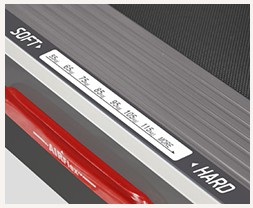 Адаптация под индивидуальный вес пользователя При помощи специальных регуляторов, уникальные амортизационные подушки air-Flex™ могут легко перемещаться назад или вперед непосредственно вдоль деки. На боковой направляющей наклеен необходимый стикер с весовыми параметрами, благодаря чему регулировка амортизации не займет много времени. Регулировать амортизацию можно не только на основании веса пользователя, но и в зависимости от предпочтений спортсмена по мягкости деки. Система air-Flex™ делает беговую дорожку максимально комфортной для любого человека.