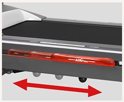 Амортизационные подушки Air-Flex™ Помимо полых эластомеров quadro-Run™ беговая дорожка укомплектована также современной технологией air-Flex™. Две амортизационных подушки и система регулировки по весу пользователей являются не менее значимым амортизационным элементом. Такое инновационное решение позволяет без усилий настроить уровень жесткости под каждого конкретного спортсмена.