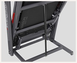 Гидравлическое складывание Soft-Drop™ Превосходная система складывания Soft-Drop™ с двухфазной гидравликой обеспечивает компактность тренажера в сложенном виде. Легкое и удобное складывание существенно упрощает эксплуатацию оборудования. При раскладывании конструкции в последней фазе полотно опускается медленно и безопасно. От самопроизвольного раскладывания предохраняет специальный надежный фиксатор.