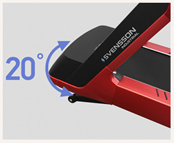 Во всех современных моделях дорожек предусмотрено наличие электрической или механической регулировки полотна. На этой установлена эффективная электрорегулировка положения полотна от 0 до 20 %, этого удалось добиться за счет установки дополнительного двигателя подъема. Изменение угла наклона обеспечивает повышение эффективности тренировок, при этом создается эффект подъема в гору или бега по пересеченной местности. Все это гарантирует получение оптимальной нагрузки на мышцы и укрепление сердечно-сосудистой системы.
