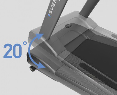 Большинство беговых дорожек имеют изменяемый угол наклона бегового полотна, регулировка которого осуществляется механическим или электрическим способом. Беговая дорожка Svensson Industrial Go T65 отличается эффективной электрической регулировкой угла наклона бегового полотна в пределах от 0% до 20%, которая обеспечивается дополнительно установленным двигателем подъема. За счет электрически изменяемого угла наклона значительно повышается эффективность тренировок, позволяя менять нагрузку и создавать эффект бега по пересеченной местности или подъема в гору. Высокая вариативность улучшает эффективность проработки сердечнососудистой системы и заставляет работать мышцы более эффективно.