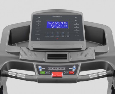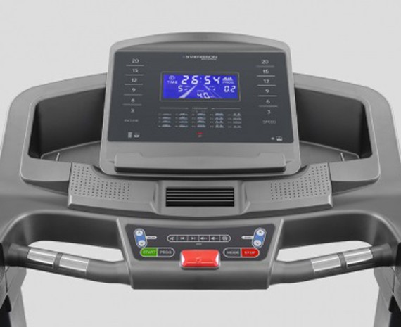 Тренировочный компьютер представлен современной консолью, оборудованной LCD-экраном высокой контрастности диагональю 18 см. Дисплей обеспечивает доступ к функциям и профилю тренировочных программ. Белые символы на синей фоне обладают высокой контрастностью и отлично читаются при любом свете. На экране четко отображаются все тренировочные параметры, в том числе дистанция, скорость, время, угол наклона, потраченные калории и пульс. Встроенный программный пакет включает 20 тренировочных программ, которые направлены на развитие скоростных качеств, укрепление сердечно-сосудистой системы, тренировку выносливости и снижение веса. Список тренировок включает три пульсозависимые программы. Пользователь также может самостоятельно настроить профиль тренировки, воспользовавшись ручным режимом, или создать собственную программу в одном из трех режимов.