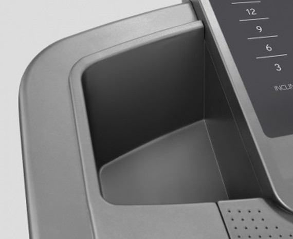 В беговой дорожке предусмотрены специальные отсеки для емкостей, в которые можно поставить бутылочку с водой. Держатели расположены в передней части тренажера по обеим сторонам от консоли.