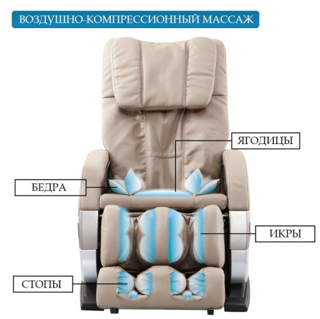 Износостойкие резиновые ролики из упругого силикона массируют тело достаточно мягко и одновременно глубоко. Они обеспечивают интенсивное воздействие на все части тела. Специальные массажные подушки с интенсивными потоками воздуха прекрасно прорабатывают мышцы. При необходимости пользователь сможет отрегулировать положение кресла, в зависимости от особенностей комплекции и собственных предпочтений.