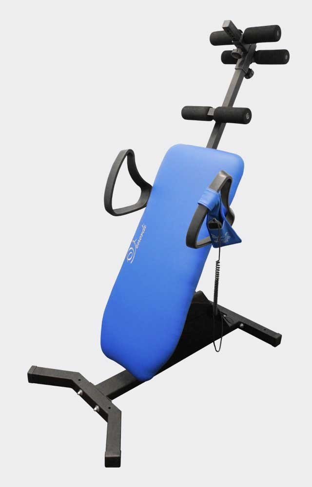 Этот тренажер прост в использовании, обеспечивая при этом отличные результаты. Пользователь закрепляет ноги и туловище на поверхности стола, а затем зависает на нем вниз головой, меняя его положение одним нажатием на кнопку пульта. В этом положении позвоночник естественным образом растягивается, а расстояние между позвонками увеличивается.