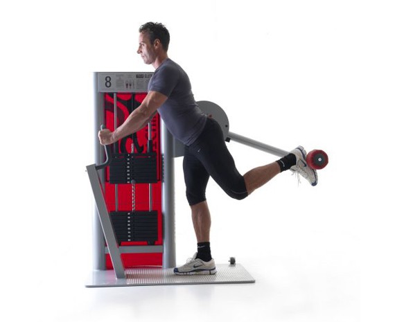 Мультихватовая эргономичная рукоятка U-образной формы позволяет выбирать удобное положение рук при выполнении упражнений. Для этого пользователь опирается на руки или на локти, а затем упирается ступней в валик и с небольшим усилием толкает его назад. Если выполнять упражнение на силовом тренажере SW08 бренда Teca без поддержки руками, то в работу включаются все группы мышц – и основные, и стабилизирующие.