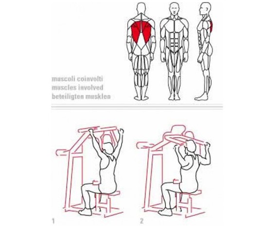 Профессиональный силовой тренажер премиального уровня для безопасной и эффективной проработки мышц спины за счет выполнения рычажной тяги сверху.