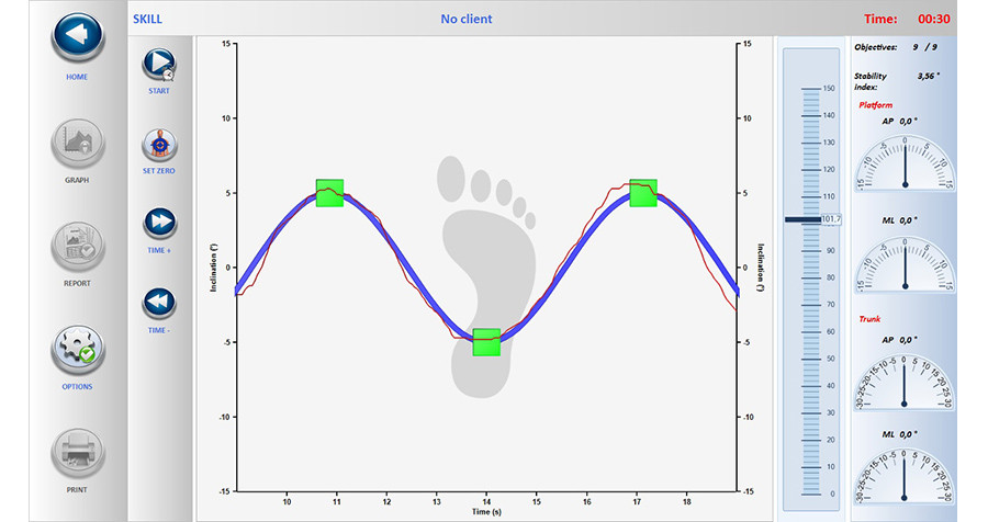 Учебные модули , После этапа оценки программное обеспечение автоматически предлагает серию упражнений, предназначенных для улучшения условий восприятия каждого отдельного движения. Тренировочные модули могут выполняться в двухподдальном или моноподальном режиме с биологической обратной связью в реальном времени.
