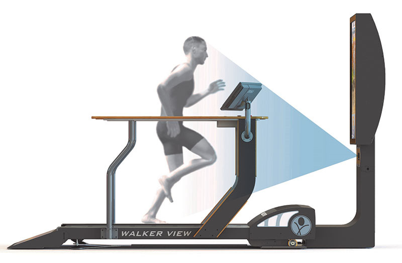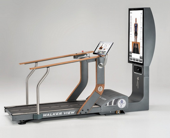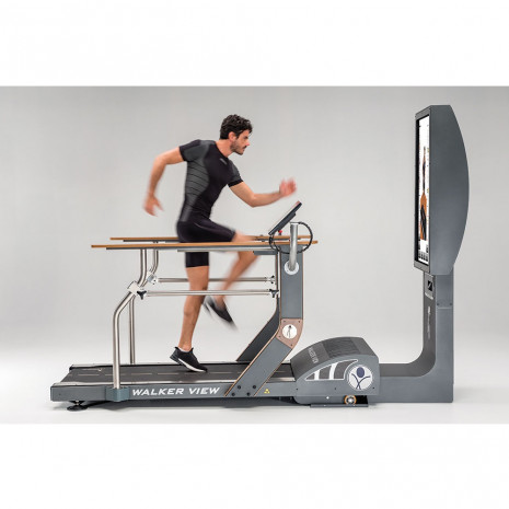 Инновационная беговая дорожка Walker-View бренда TechnoBody - лаборатория бега и ходьбы с интерактивной проекцией тела пациента, датчиками движения и с автоматической регулировкой скорости.. Она предназначена для исправления и улучшения рисунка ходьбы, измерения диапазона движений туловища, тазобедренных, коленных, голеностопных суставов при ходьбе и беге, видео-захвата движения для его анализа и тестирования. Тренажер обеспечивает виртуальную и дополненную реальности. Предусмотрена система разгрузки веса пациента.