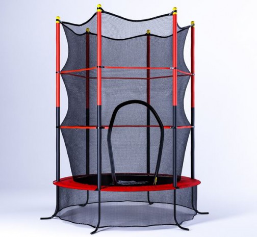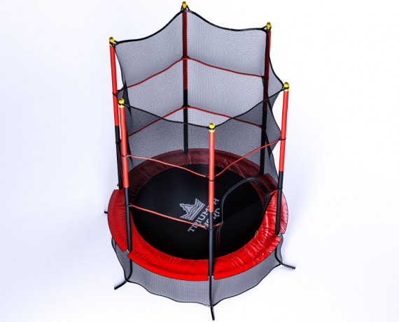 Наличие защитной сетки выгодно отличает эту модель от всех небольших домашних батутов. Она надежно защищает ребенка и ограждает его от ушибов и неудачных падений. Это особенно важно в первое время, когда ребенок только начинает прыгать на батуте и не очень ловок или же в пылу азарта демонстрирует свои возможности. Еще большая безопасность обеспечена тем, что сетка соединяется с защитным покрытием, которое закрывает пружины и каркас батута.