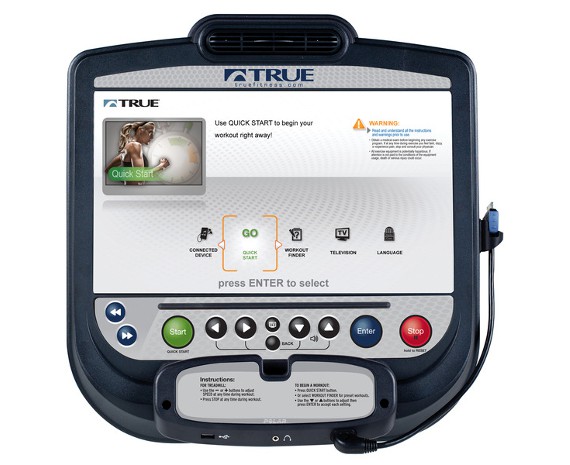 На консоли имеется современный жидкокристаллический дисплей, который отображает актуальную информацию о параметрах выбранной программы. В поручнях встроены цифровые сенсоры, помогающие контролировать показания пульса пользователя. Система самостоятельно определяет присутствие человека. Дополнительным плюсом можно отметить наличие держателя для бутылки с питьевой водой.