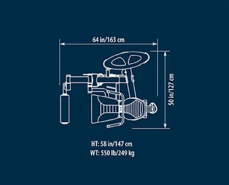 Корпус двигается по линейной дуговой траектории вместе с тренажером, что позволяет эффективно прорабатывать все целевые мышцы.