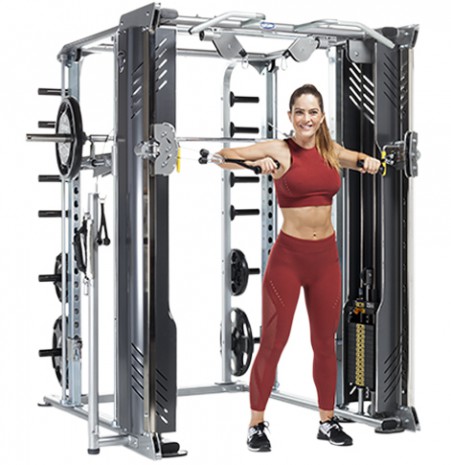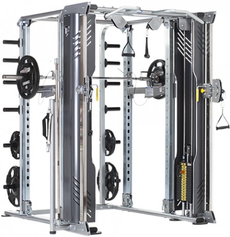 Машина Смита XPT-900&DAP-955 бренда TuffStuff Fitness – не имеющий аналогов силовой тренажер среди профессионального оборудования! Его преимуществом является сочетание всех возможностей силовых рам для жима штанги, мультижимовых тренажеров и Машины Смита, благодаря чему на этом тренажере можно выполнять горизонтальные, диагональные, латеральные и вращательные движения штангой. Возможности машины Смита усиливаются за счет дополнительной опции DAP-955 Dual Adjustable Pulley System с грузовым стеком весом 68 кг (150 фунтов).