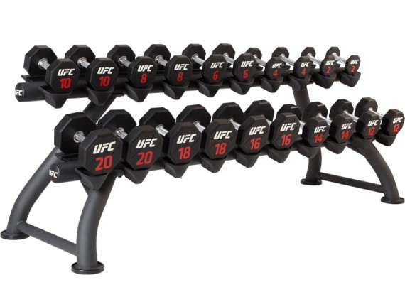 Общий вес гантельного ряда Premium Urethane Dumbbell Set бренда UFC составляет 220 кг.