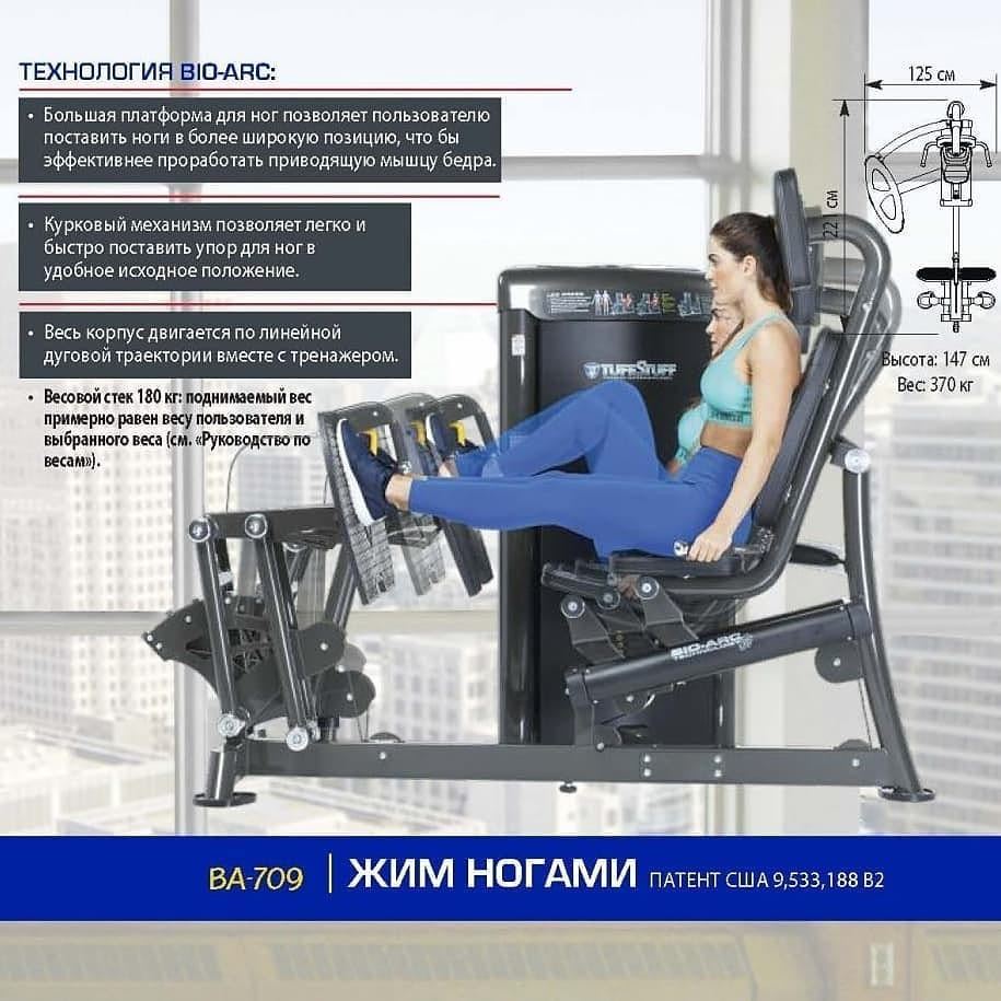 Bio-Arc Leg Press (BA-709) от TuffStuff – это феноменальный способ улучшить схему тренировки ног. Являясь частью самой инновационной серии силовых тренажеров TuffStuff, Bio-Arc Leg Press специально разработан и протестирован для обеспечения оптимальной биомеханики.