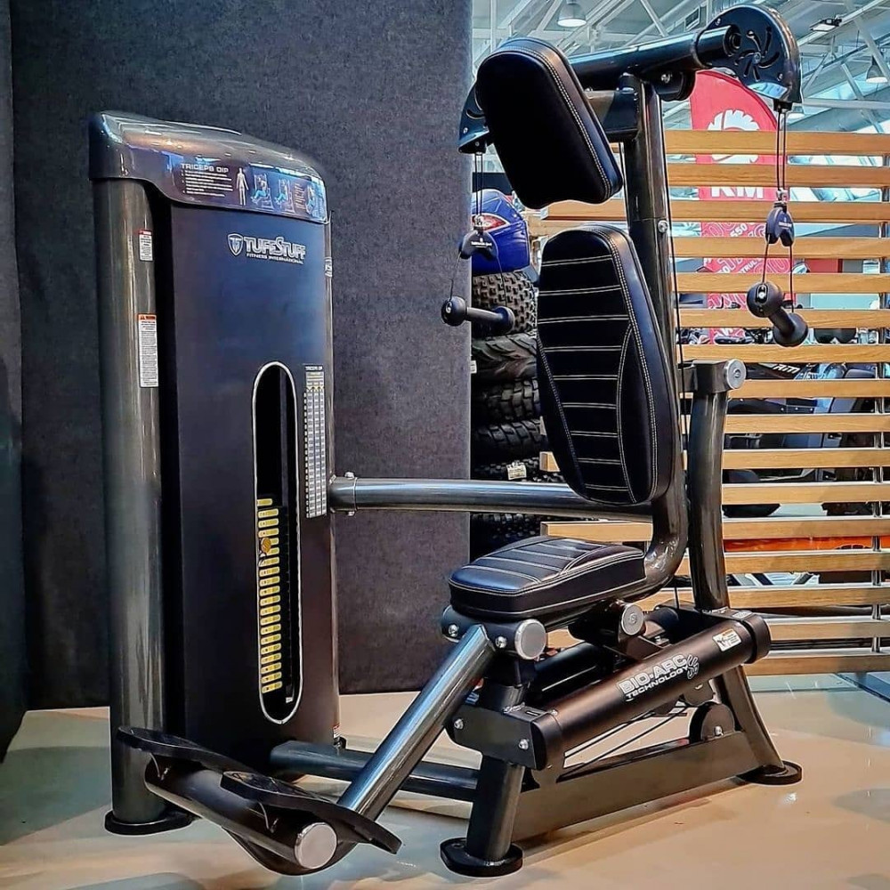 Силовой тренажер TUFFSTUFF Bio-Arc Triceps Dip (BA-704), предназначенный для отжиманий узким хватом, входит в самую современную коммерческую линейку силового оборудования. Тренажер Bio-Arc Triceps Dip одинаково подойдет как новичкам, так и опытным спортсменам. Просто садитесь в тренажер, беритесь за рукоятки и начинайте отжиматься. Регулировка сиденья не требуется. Вытягивая независимые вращающиеся рукоятки, Вы заставляете весь корпус двигаться по линейной дуговой траектории вместе с тренажером, тем самым эффективно прорабатывая все целевые мышцы.