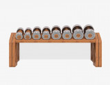 Система хранения гантельного ряда UNO Albero позволяет разместить гантели весом от 1 до 6 кг на минимальной площади благодаря своей форме в виде ёлочки.