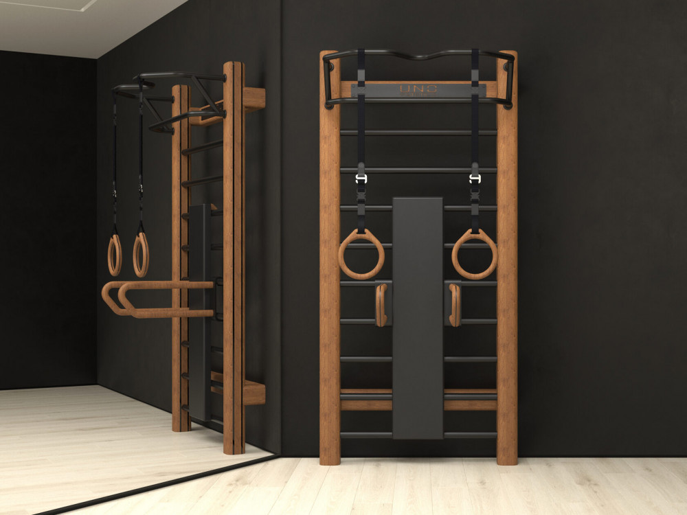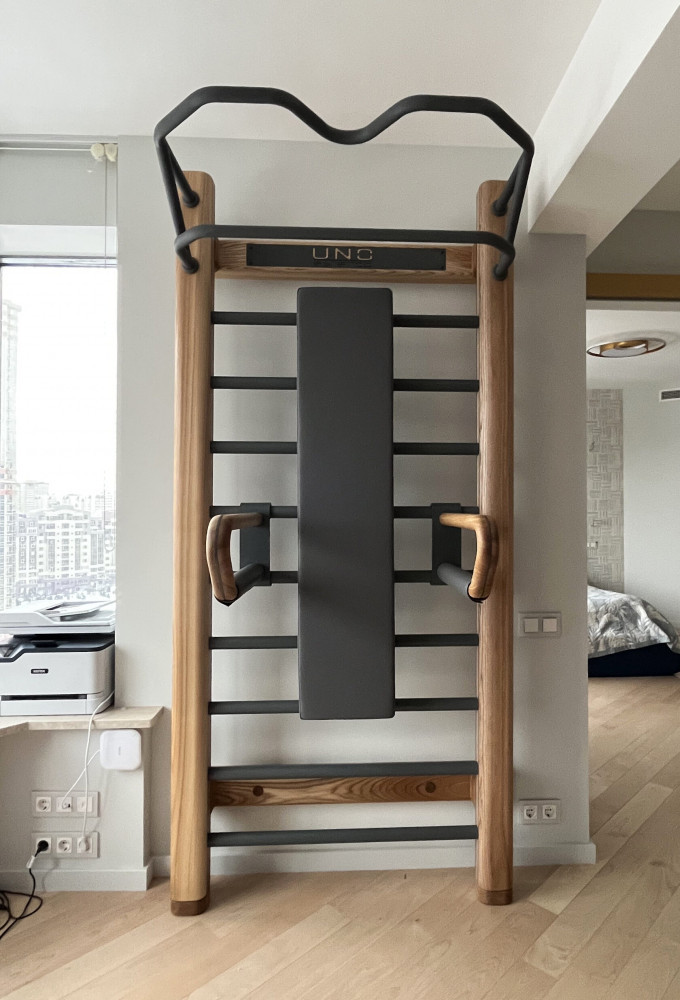 Шведская стенка UNO Arte изготовлена из массива дуба и разработана с учётом последних трендов инженерии и биомеханики. Она эргономична, износостойка и поможет вам поддерживать хорошую форму.