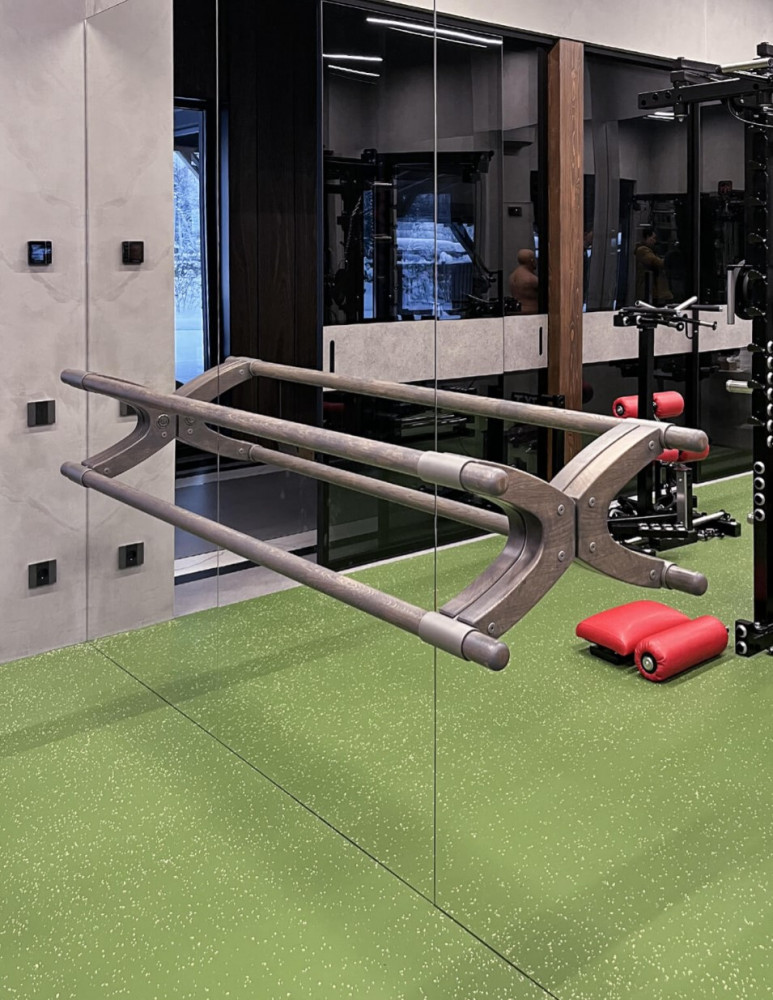 Такая зона, как правило, располагается вблизи зоны силовых тренажеров, порой объединяясь с ней. Зона свободных весов оснащается в гармонии с общей концепцией клуба. Обязательным является наличие в тренажерном зале зеркал.
