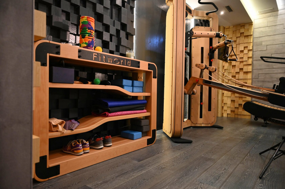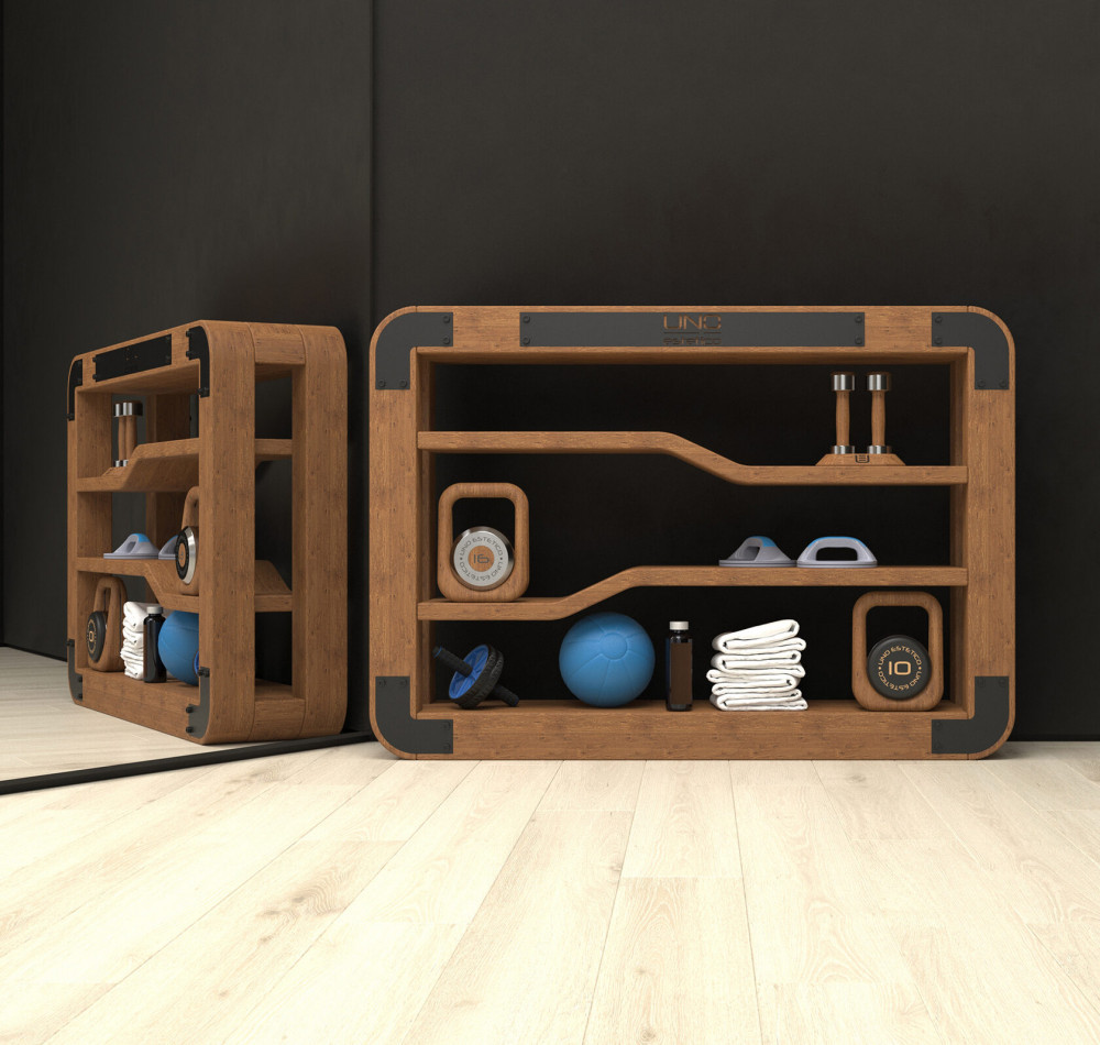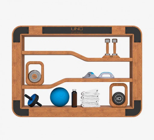 Система хранения UNO ECO — это функциональный предмет и элемент дизайна, изготовленный из массива бука или дуба. Она предназначена для аккуратного хранения спортивных аксессуаров и гантелей.