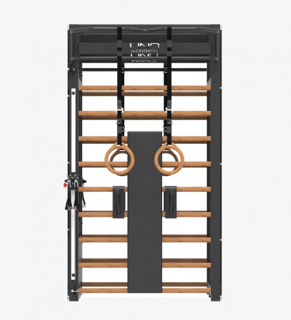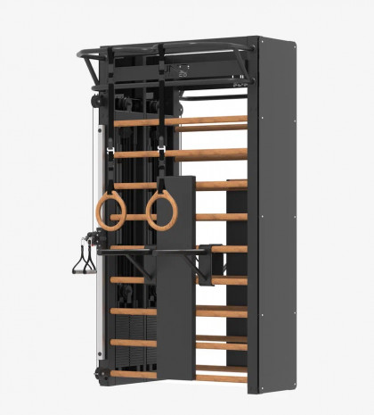 Тренажер оснащен различными элементами: шведской стенкой, турником, кроссовером, петлями TRX, гимнастическими кольцами, универсальной скамьёй и брусьями. Этот тренажёр позволяет эффективно прорабатывать все группы мышц.
