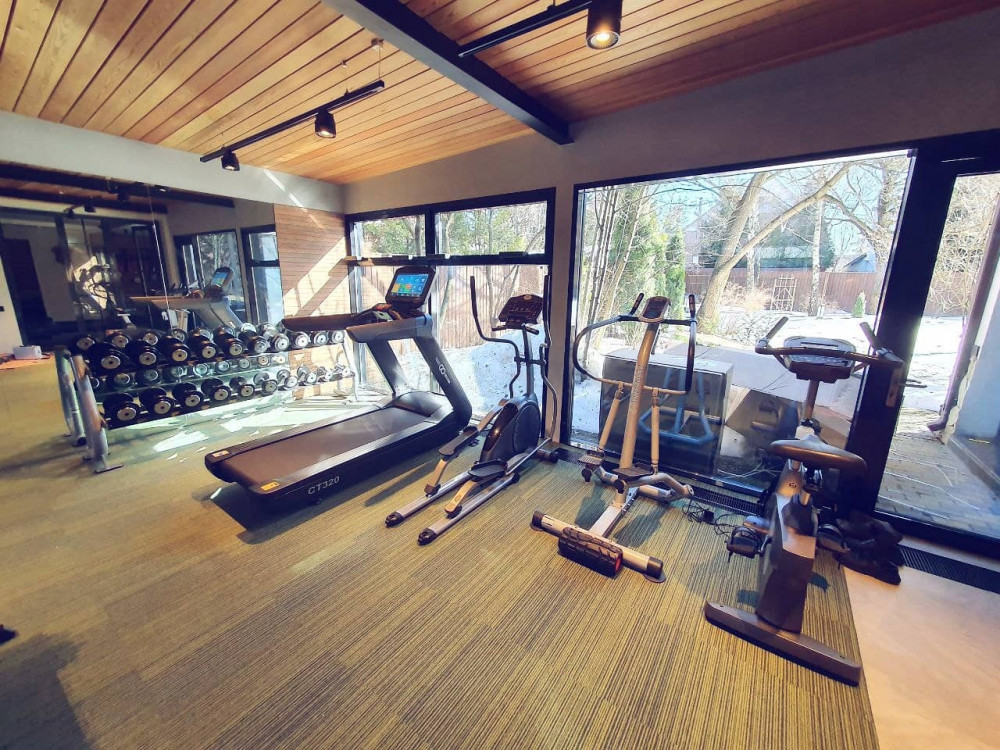 Такая зона, как правило, располагается вблизи зоны силовых тренажеров, порой объединяясь с ней. Зона свободных весов оснащается в гармонии с общей концепцией клуба. Обязательным является наличие в тренажерном зале зеркал.