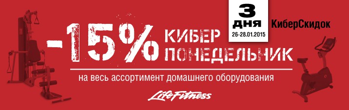 Только 3 дня (с 26 по 28 января) скидка 15% на весь ассортимент домашнего оборудования Life Fitness!