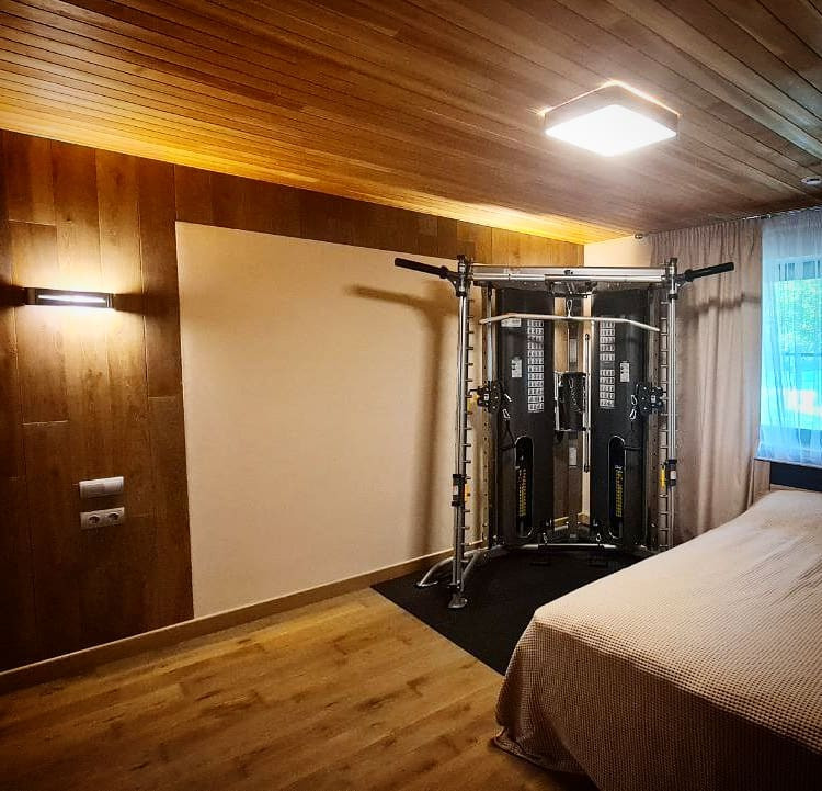 Такая зона, как правило, располагается вблизи зоны силовых тренажеров, порой объединяясь с ней. Зона свободных весов оснащается в гармонии с общей концепцией клуба. Обязательным является наличие в тренажерном зале зеркал.