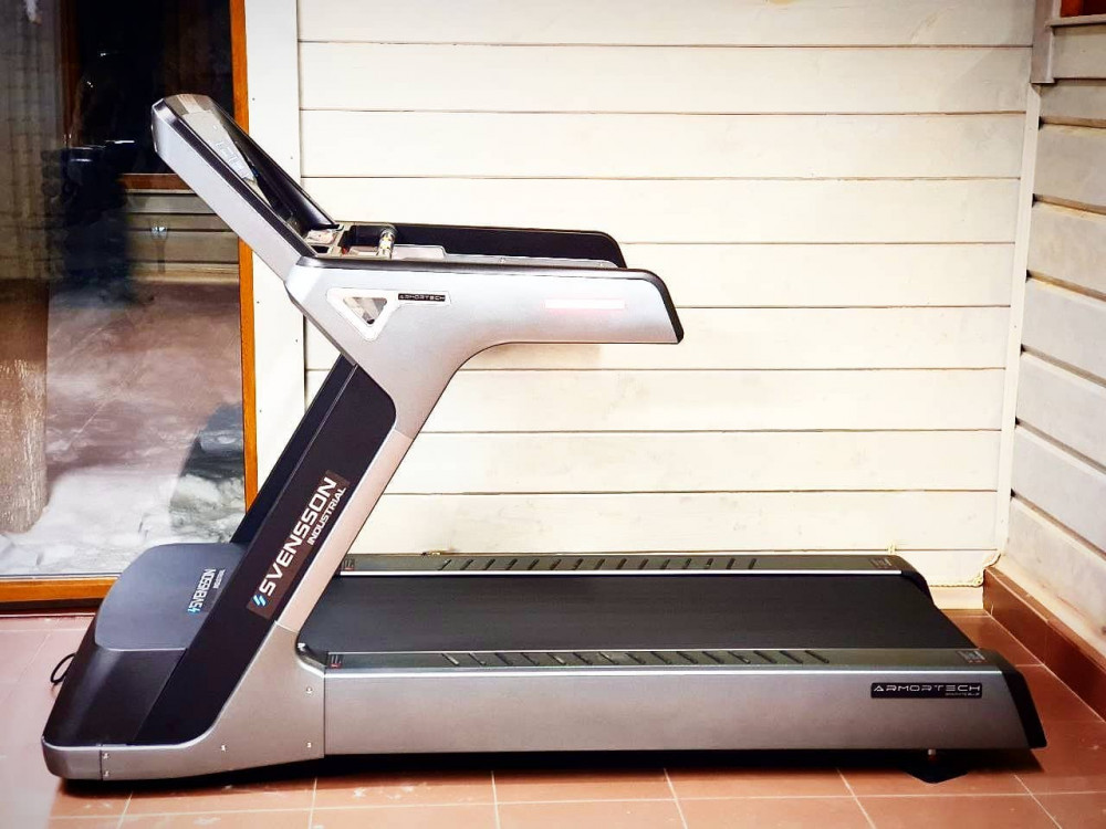 Беговая дорожка Svensson Industrial Armortech получила в свое оснащение японский двигатель Fuji, обеспечивающий мощность в 5,5 л.с., в пиковой зоне до 8,6 л.с. Угол наклона можно менять до 20%, максимальная скорость движения достигает 23 км/час.
