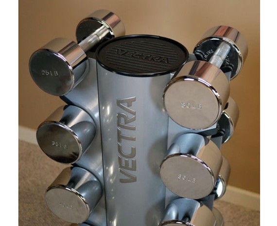 Подставка под гантели DB8 бренда Vectra представляет собой вертикальную напольную стойку, позволяющую удобно хранить до восьми пар хромированных гантелей весом 1,36 - 11,34 кг (3 - 25 фунтов).