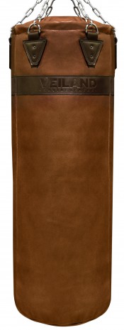 Боксерский мешок из натуральной кожи GL18035-02 бренда Veiland входит в линейку боксерских мешков GL, для изготовления которых используется натуральная кожа Genuine Leather толщиной не менее 2,2-2,4 мм. С целью обеспечения максимальной прочности оболочки кожа с внутренней стороны армируется ПВХ-каркасом, что увеличивает общую толщину слоя до 3,3-3,5 мм. За счет этого боксерские мешки из натуральной кожи отличаются самой большой надежностью и выносливостью в коллекции Veiland. Подбор боксерского мешка осуществляется с учетом весовой категории спортсменов, поэтому данная модель, вес которой составляет 65 кг, подходит для спортсменов-тяжеловесов. Крепление мешка осуществляется с помощью стальных карабинов и колец.